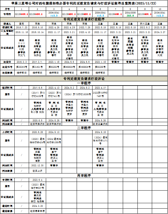 三、19起无效宣告请求程序与行政诉讼案件总览(2025/11/23)
